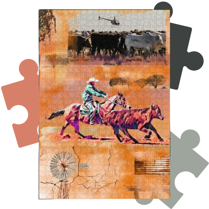 Are you ready to embark on a journey through the captivating essence of rural life in the Australian outback? At the "Rhythms of Rural Life," puzzle series we've transformed some of the breathtaking moments of the this lifestyle and the outback's beauty into a unique masterpiece.